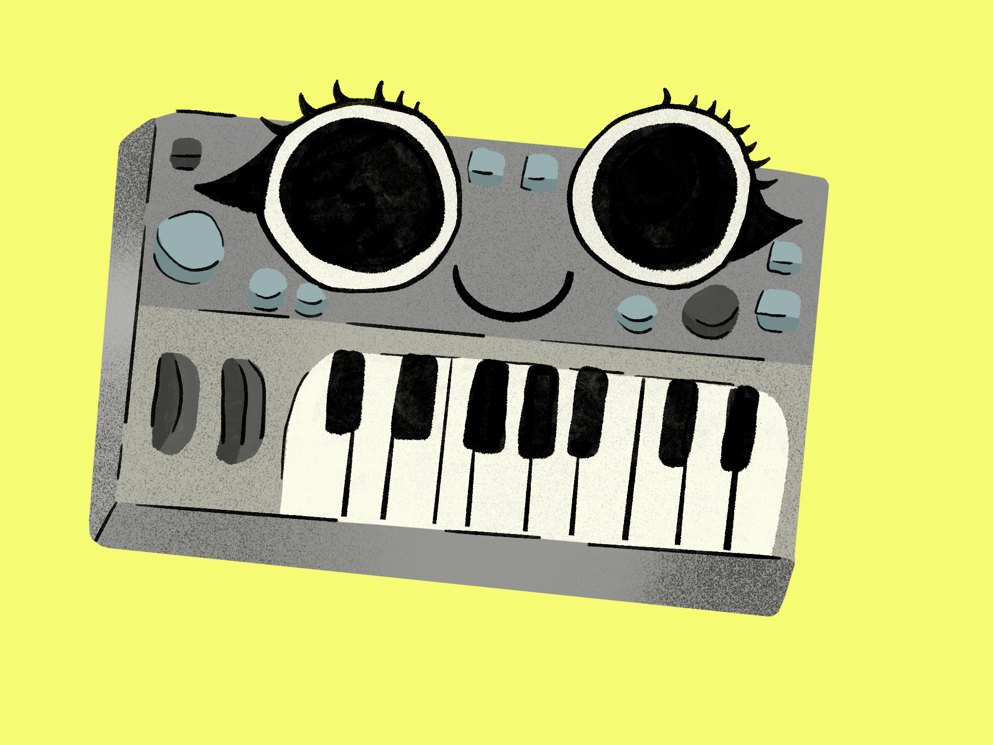 Commission from my friend and fellow Twitch streamer RavenZoe. She wanted a PNGtuber for when she streamed without a face cam. I was asked to illustrated her favourite synth, with a cute, cartoony face and simple mouth animation that would be activiated everytime she spoke into the mic. Drawn digitally with Procreate,